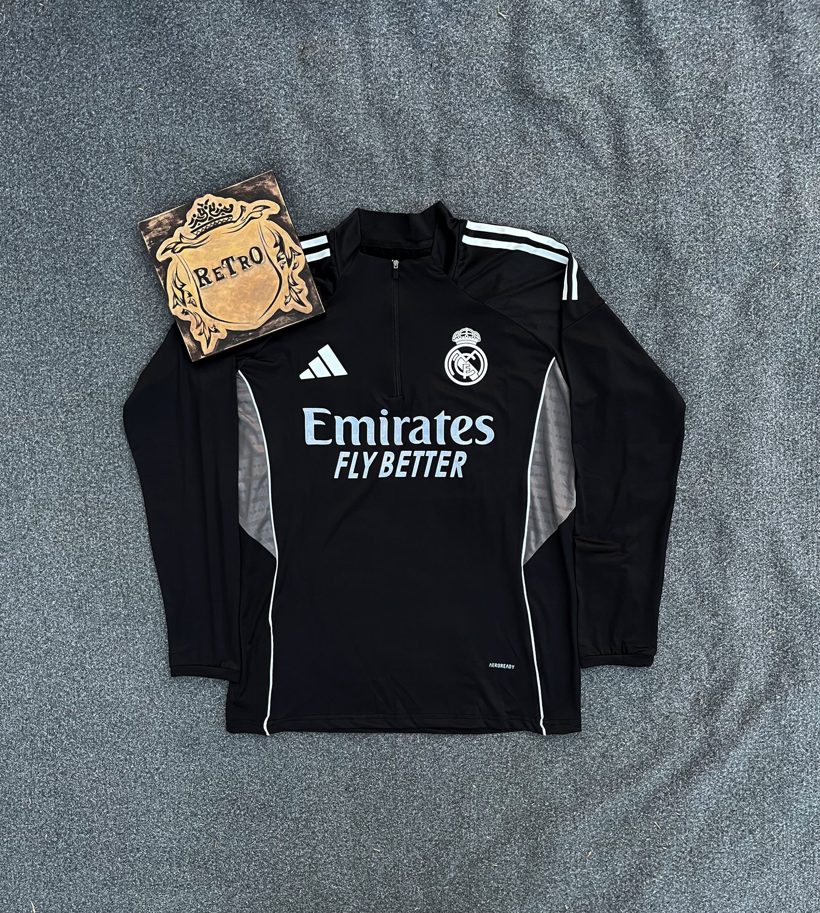 A sleek all-black design that reflects the elegance and power of Real Madrid — on and off the field.